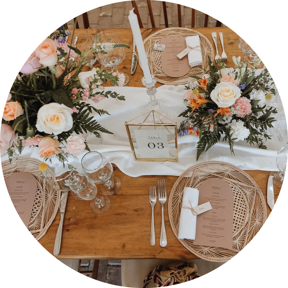 Una vez creado el concepto te presentamos los colores, formas y texturas que nos inspiran a crear el que será un ambiente único y original para tu boda.